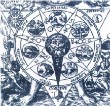 En sus escritos podemos encontrar estas palabras; Jerarquía de los dioses inteligibles y los dioses sensibles (corpus hermeticum) Los 36 que llamamos horóscopos, es decir los astros, se encuentran siempre fijos en el mismo lugar. Las llamadas siete esferas se transforman según la ley de la naturaleza y de acuerdo con un orden totalmente fijo que se ve diversificado por un movimiento perpetuo. Esto quiere decir, que Egipto, basaba sus creencias en las siete grandes luminarias que eran visibles en el cielo, estas luminarias o planetas serian: Saturno, Júpiter, Marte, Sol, Venus, Mercurio y la Luna. Sabedor de ello Nostradamus creó una forma muy inteligente de simplificar o entender esta sabiduría contemplada en los escritos de Hermes y un antiguo símbolo esotérico denominado “VITRIOL”, que pudo tener origen en éste mismo.