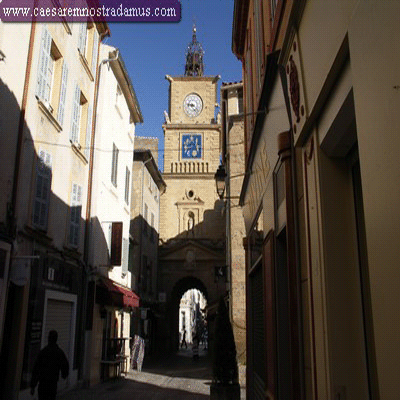 La construcción de la Torre del reloj empezó con el rey Louis XIII, y la terminó Louis XIV. Tenía entonces un mecanismo muy novedoso que permitía tocar automáticamente las campanas, y te daba también la posición de la luna. Una vez tuvieron el reloj, los habitantes pudieron compartir de manera justa las herramientas de irrigación y el agua que venía por los canales. Cada uno tenía derecho de abrir el grifo cierto tiempo estimado al día. La parte norte de la torre representa las estrellas de Cáncer en la cual una esfera describe los movimientos de la luna. La parte sur indica los días de la semana representados por los cuerpos celestes, es decir, lunes día de la luna, martes día de Marte, miércoles de Mercurio, jueves de Júpiter, viernes de Venus, sábado de Saturno y Domingo día del sol. En 2003 el edificio fue renovado y ahora se luce con todo su esplendor.