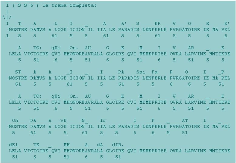 95 18 16 1 69 116 109 2 58 81 38 19 44 14 45 O N LAS DÉCIMAS LETRAS DEL ALFABETO ITALIANO