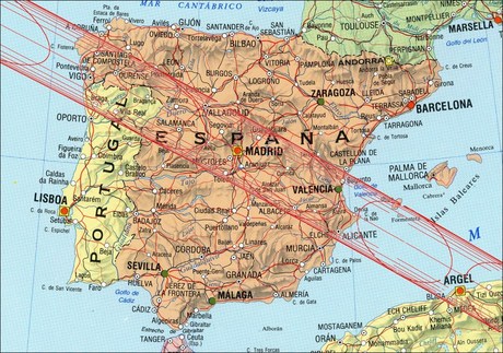 El lunes día 3 de octubre de 2005 un eclipse anular de sol será visible en España, siendo el primero de tales eclipses que cruzará la península ibérica desde el siglo XVIII. El eclipse será visible como anular en una franja de unos 190 Km de anchura que entrará en la península por Galicia a las 10h 51m (hora oficial peninsular), englobará 14 capitales de provincia, incluida la capital, Madrid, y la franja, ya de sólo 180 Km de anchura, abandonará la península por la zona costera entre Valencia y Alicante a las 11h 3m donde se alcanzará un oscurecimiento del disco solar del 91%. La duración de la fase de anularidad en el centro de la trayectoria superará los 4 minutos.